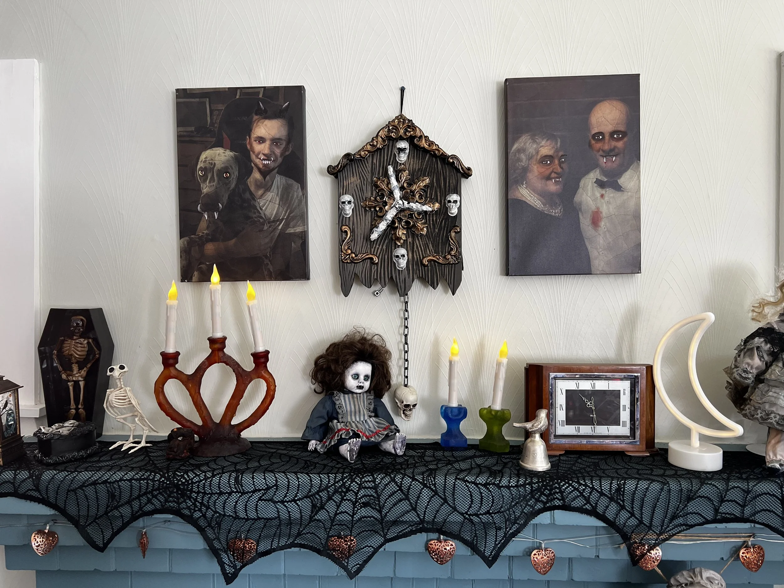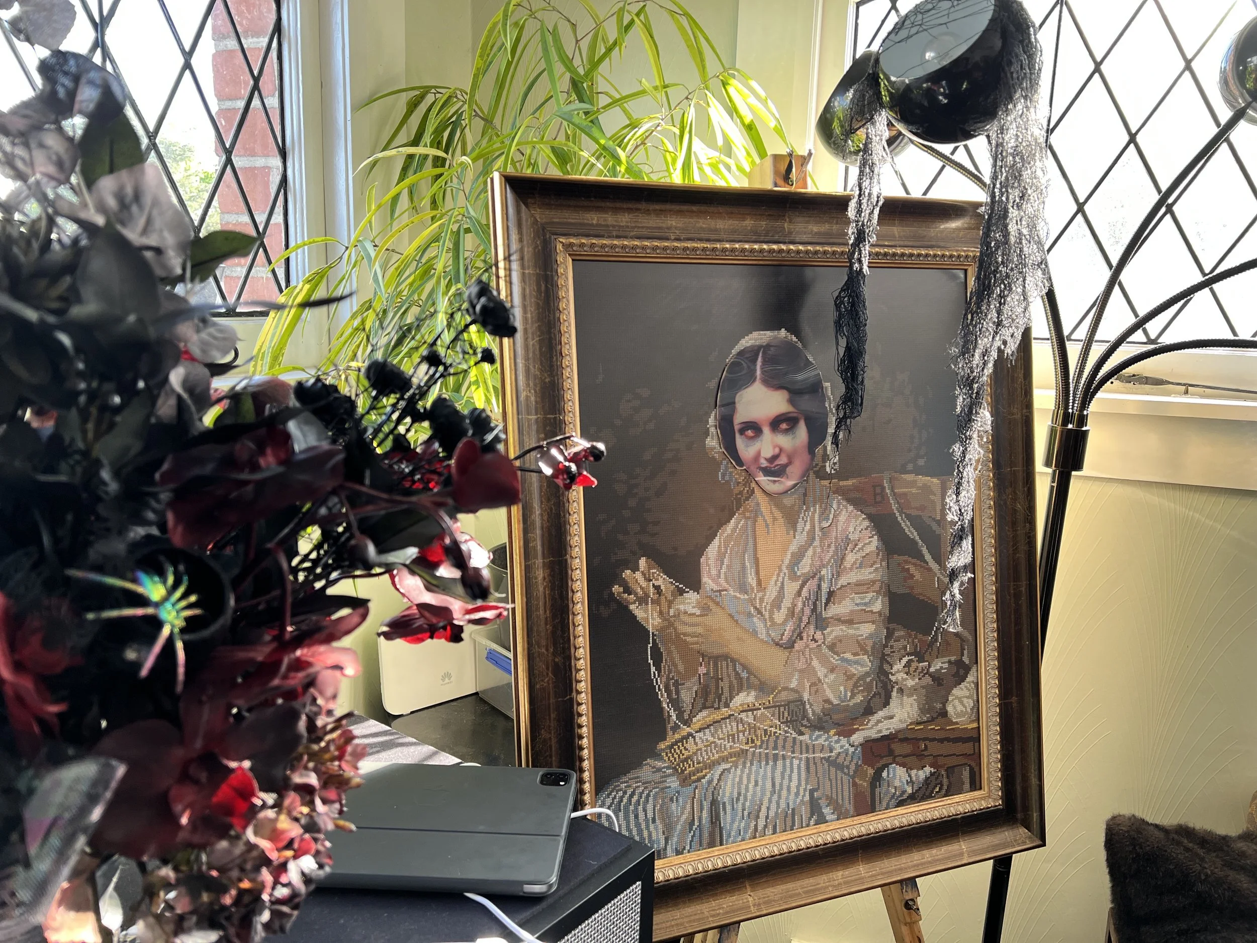 Lady Fitz is a house of gathered wonders and whispered mischief, kept by Maree and Drew — devoted caretakers of art, oddities, and the strange beauty of Halloween. Within its walls, paint, glass, and stitched creations live side by side with forgeries and forgotten dreams, all tended with a knowing hand and a glint of playful wickedness.